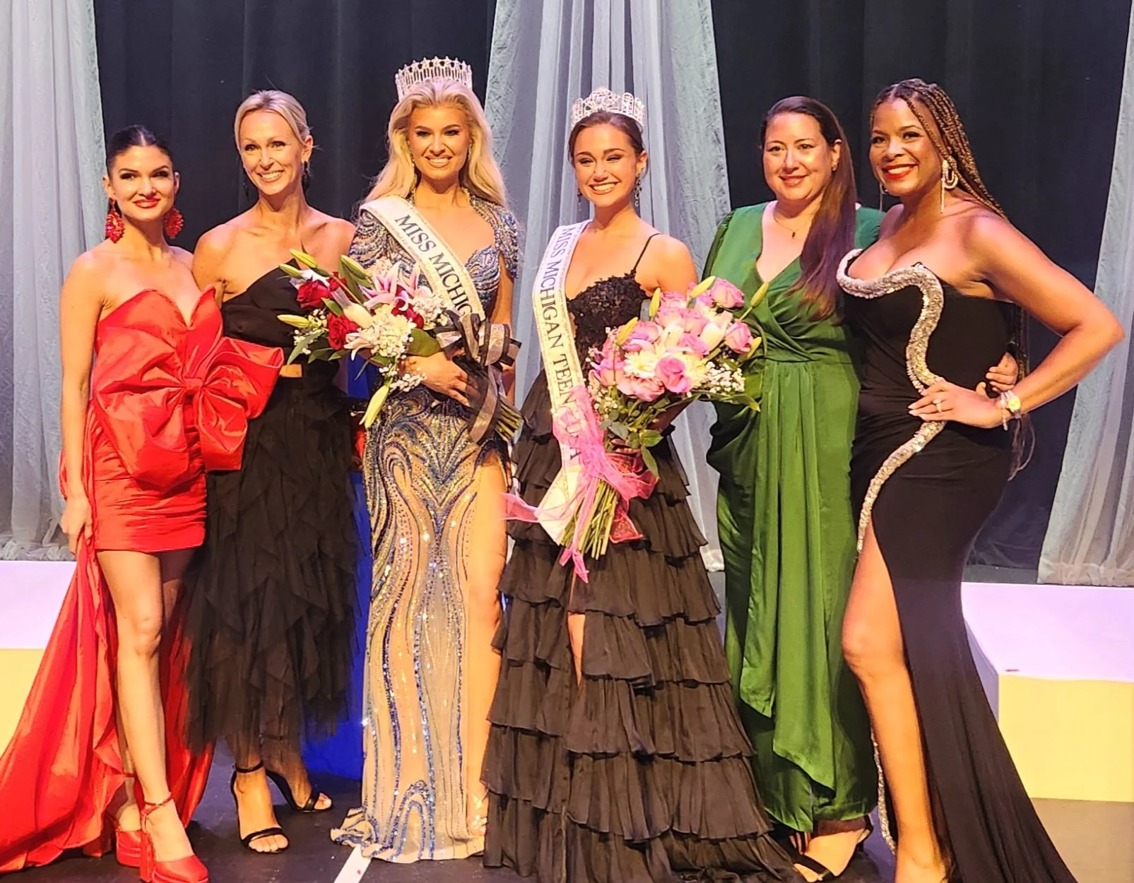 From left to right: Lt. Commander, Kelly Sbrocchi, Miss MI USA 2002 Rebekah Decker-Skivner, Miss MI USA 2025 Michele Lewandoski, Miss MI Teen USA Eliy Simmer, Besté Travel Design founder Meghann Bjarnesen, Miss MI USA 2004 Stacey Lee Spratt.
